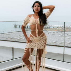 set 2 pezzi crochet crochet gonna + top con lacci bianco
