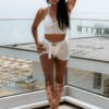 Abito lungo crochet bianco con spacco elasticizzato, cintura compresa nell abito.Stupendo sia di giorno sia di sera, sia come copri costume