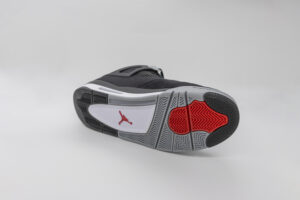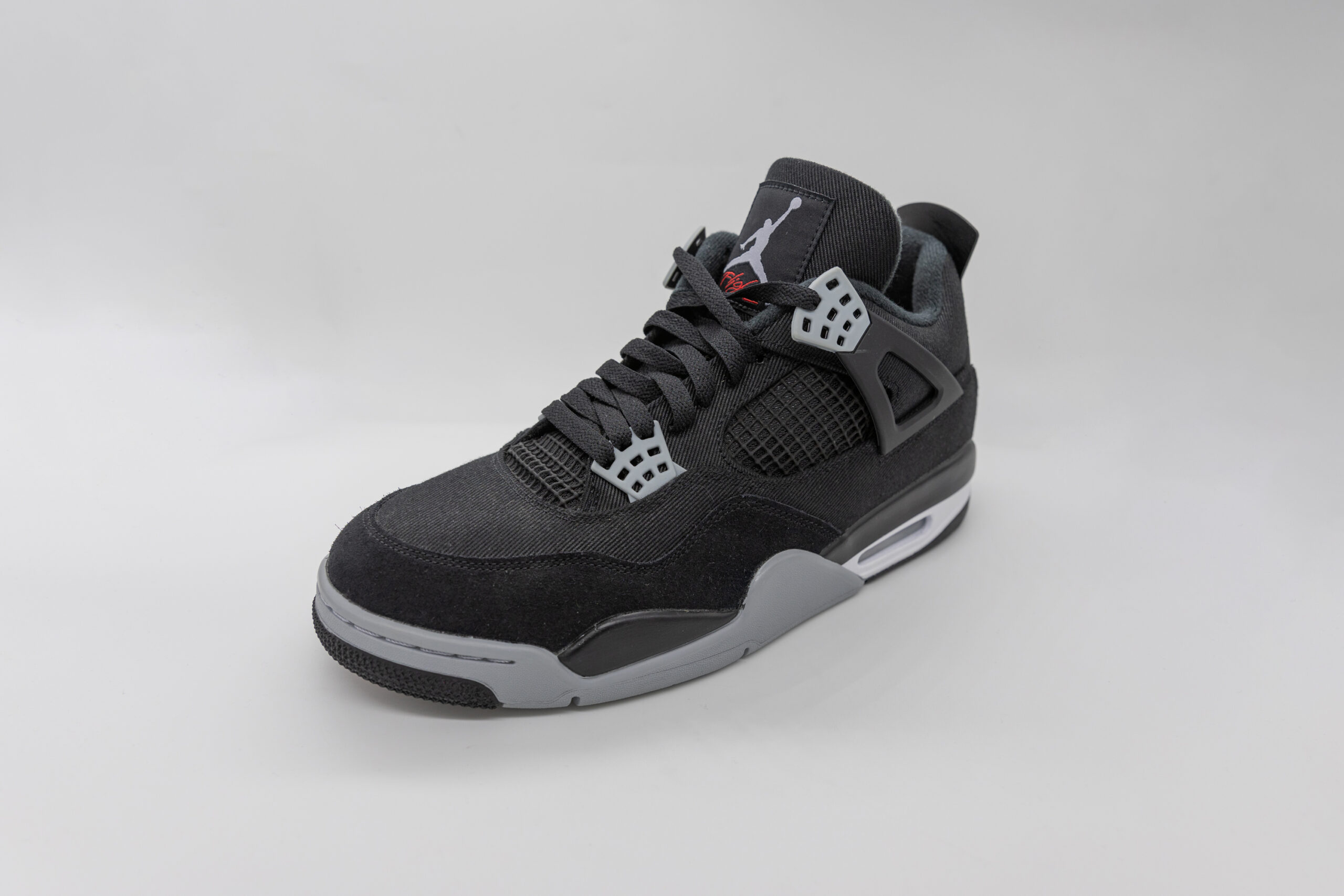 La Air Jordan 4 Retro SE Black Canvas si presenta in una colorazione neutra con tocchi contrastanti di rosso cremisi.