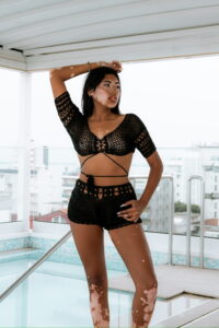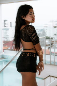 Ogni capo di questo set è realizzato con cura utilizzando pregiati filati di cotone nero, che donano una sensazione di morbidezza sulla pelle. La lavorazione a crochet conferisce un tocco di femminilità e raffinatezza, evidenziando la bellezza dei dettagli intricati.